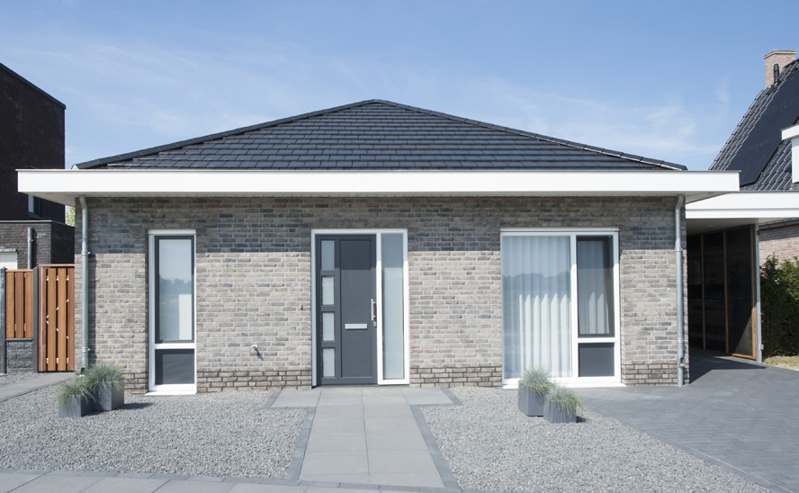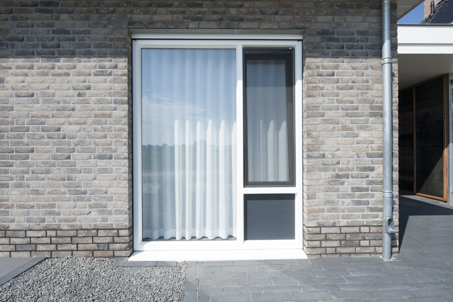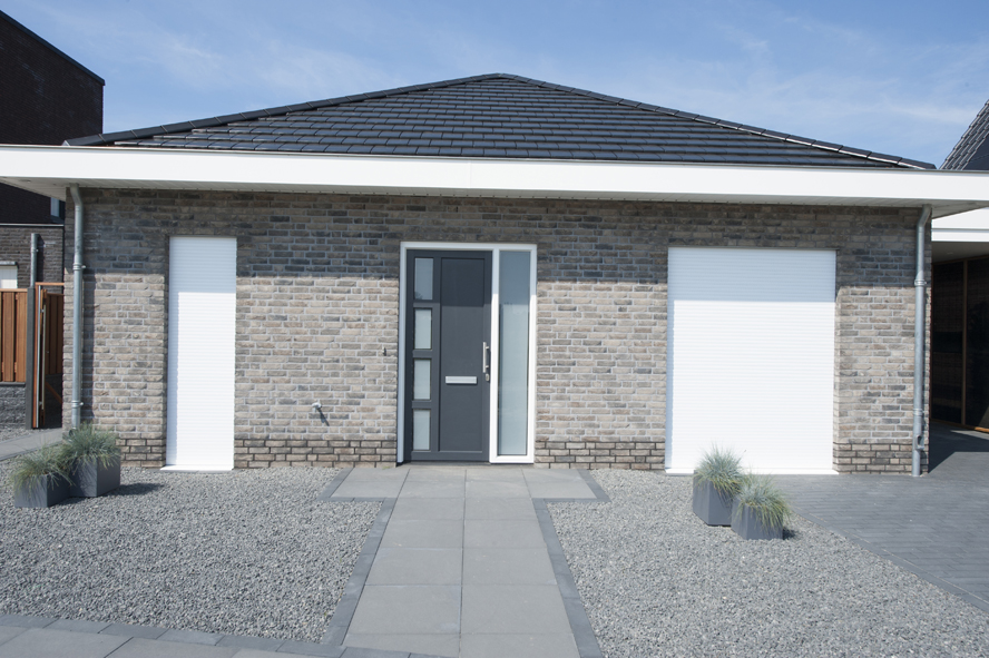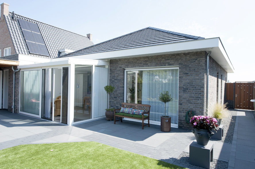 Nieuwbouw, kunststof kozijnen, kunststof voordeur, aluminium serre, zonwering en rolluiken in Vlijmen