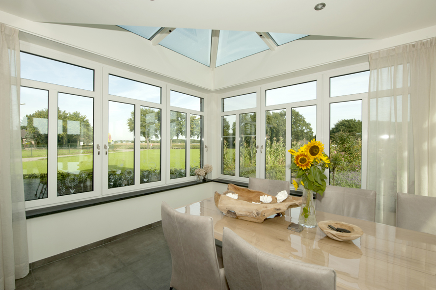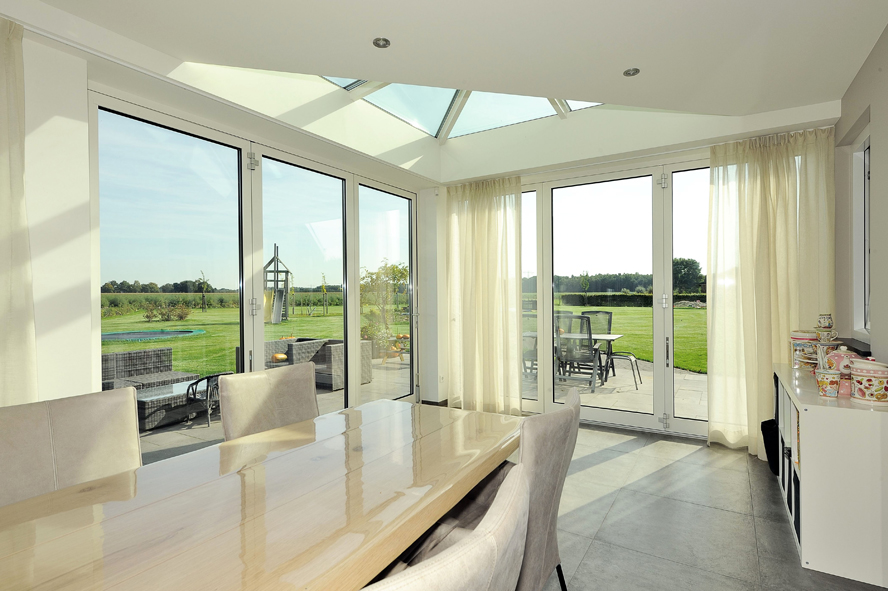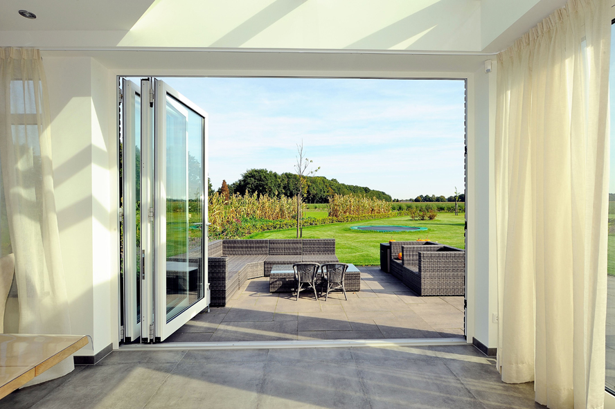 Nieuwbouw, kunststof voordeur, kunststof kozijnen, kunststof achterdeur, aluminium lichtstraat, aluminium vouwwand in Panningen